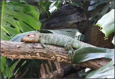 Caiman Lizards are semi-aquatic lizards that primarily eat fish, frogs, and small mammals. They use their powerful jaws and sharp teeth to catch and consume their prey.
